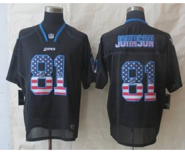 nike nfl jerseys detroit lions #81 calvin johnson black[Elite USA flag fashion]