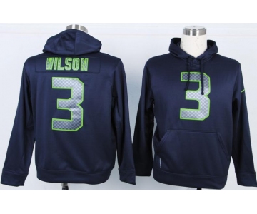 Nike Seahawks #3 Russell Wilson Navy Blue Green Name & Number Pullover NFL Hoodie