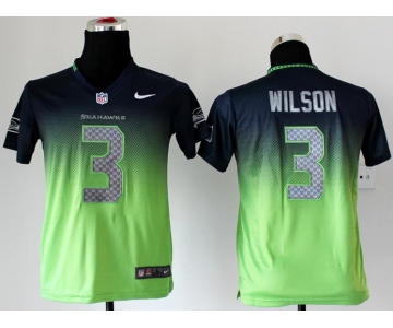 nike youth nfl jerseys seattle seahawks #3 wilson blue-green[nike drift fashion][second version]