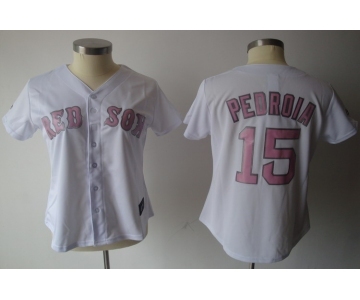 women mlb jerseys boston red sox #15 pedroia white[pink number]