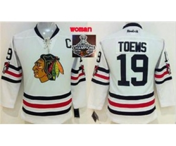 women nhl jerseys chicago blackhawks #19 toews white[2015 Stanley cup champions]