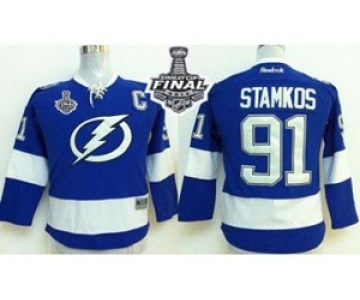 youth nhl jerseys tampa bay lightning #91 stamkos blue[2015 stanley cup][patch C]