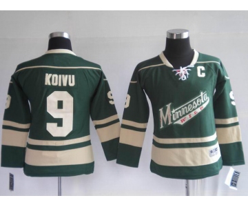 Youth Adidas Minnesota Wild #9 Mikko Koivu Green Home Authentic Stitched NHL Jersey